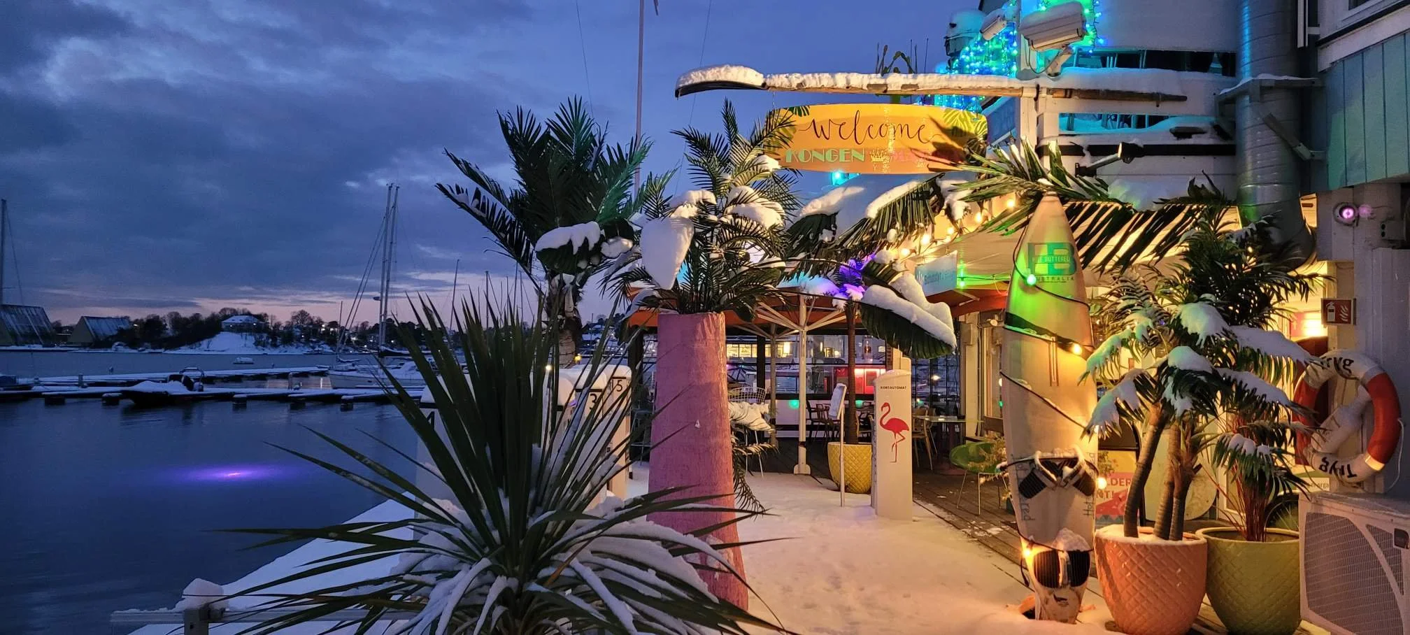 Vi er åpne hele året med en digg sesongbasert meny på restauranten, litt fart og spenning på beach cluben, samt et trivelig cafètilbud med bakevarer og skikkelig god kaffe. -Nå holdt vi nesten på å glemme at vi også har en trivelig butikk med båtutstyr, en velfylt iskremkiosk, har utleie av sup brett og kajakker og at vi leier ut noen båter for korte og lange overnattingsbesøk på marinaen.